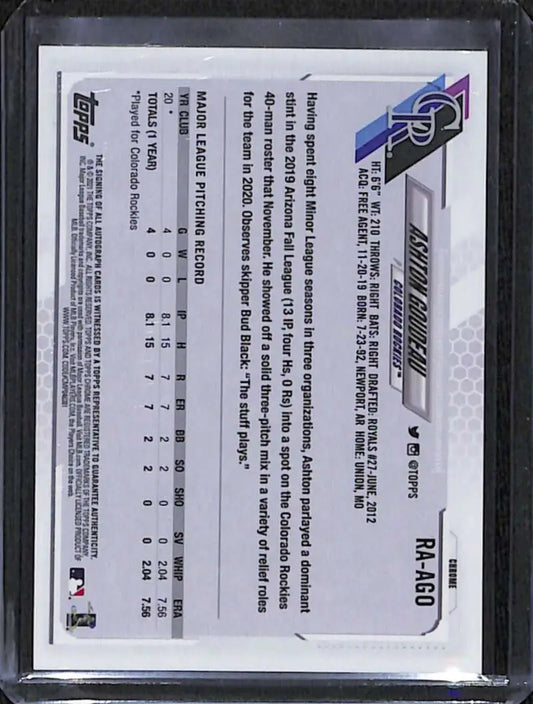 2021 Topps Chrome #RA-AGO Ashton Goudeau Rookie Auto NM-MT Baseball Card