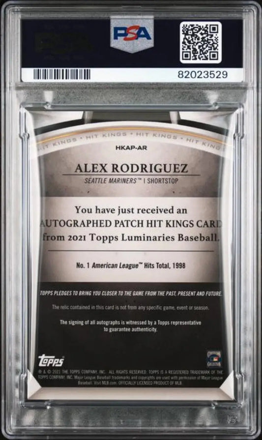 2021 Topps Luminaries Hit Kings Patches #HKAP-AR Alex Rodriguez PSA 8 NM-MT MEM Auto 8/15 Seattle Mariners Baseball Card