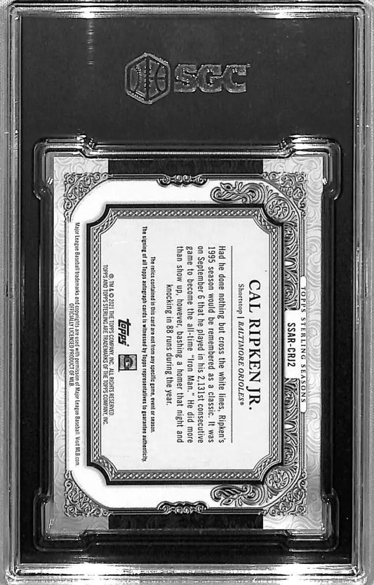 2021 Topps Sterling Seasons Relics #SSAR-CRJ2 Cal Ripken Jr. SGC 9.5 MINT+ MEM Auto 16/25 Baltimore Orioles Baseball Card