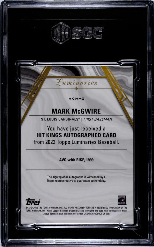 2022 Luminaries #HK-MMC Mark McGwire SGC 9.5 MINT+ Auto 10/10 St. Louis Cardinals Baseball Card