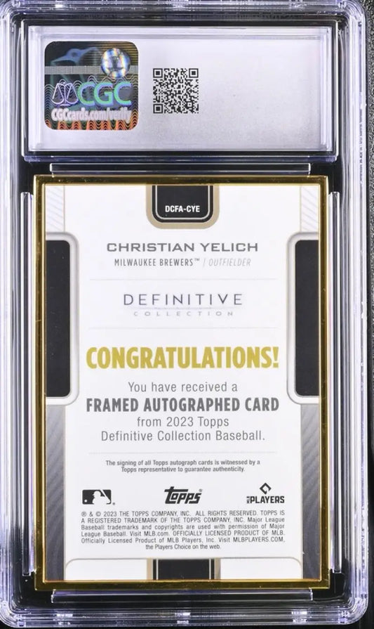 2023 Topps Definitive #DCFACYE Christian Yelich CGC 9 Mint Auto 20/30 Milwaukee Brewers Baseball Card