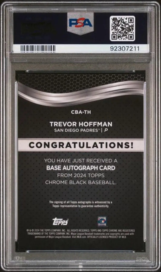 2024 Topps Chrome Black #CBA-TH Trevor Hoffman PSA 9 MINT Auto San Diego Padres Baseball Card