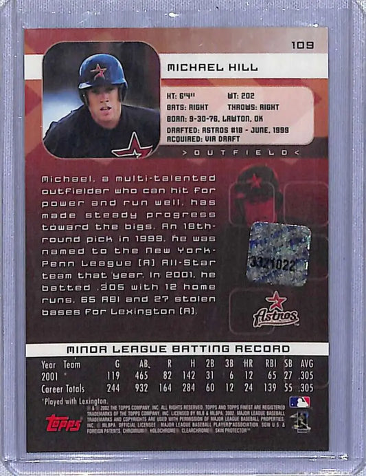 2002 Finest #109 Mike Hill Auto Houston Astros NM-MT Baseball Card