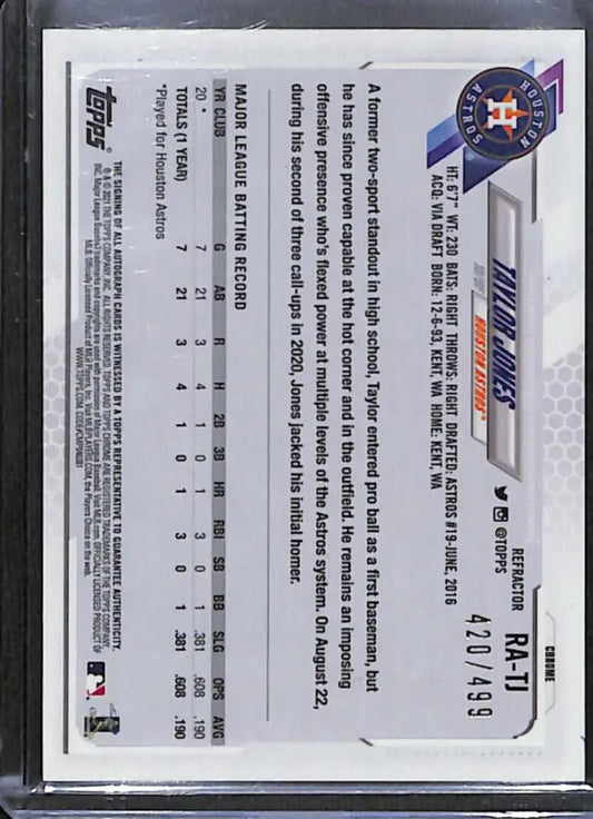 2021 Topps Chrome #RA-TJ Taylor Jones Rookie Auto Refractor #/499 NM-MT Baseball Card