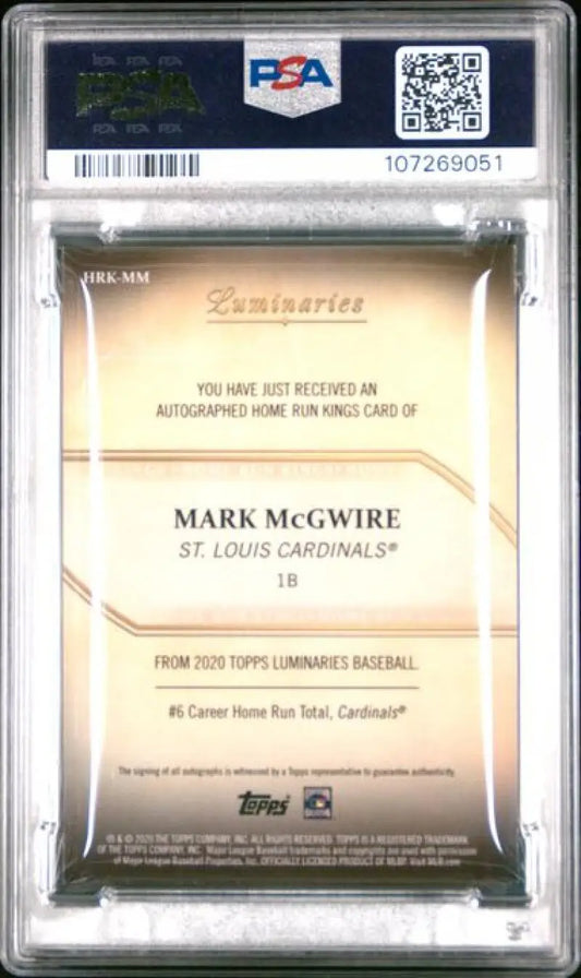2020 Topps Luminaries Home Run Kings Autographs #HRK-MM Mark McGwire PSA 9 MINT Auto 13/15 St. Louis Cardinals Baseball Card