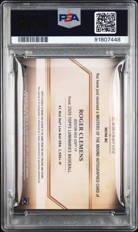 2020 Topps Luminaries Masters of the Mound #MOM-RC Roger Clemens PSA 9 MINT Auto 8/15 Boston Red Sox Baseball Card