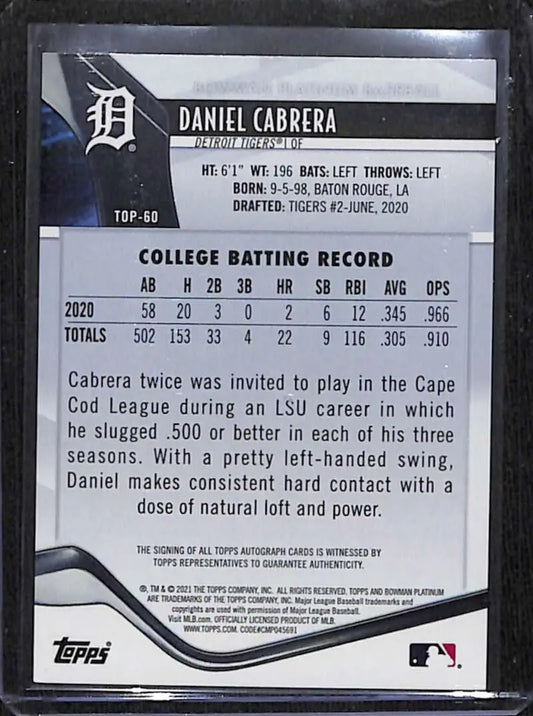 2021 Bowman Platinum #TOP-60 Daniel Cabrera Top Prospects Auto NM-MT Baseball Card