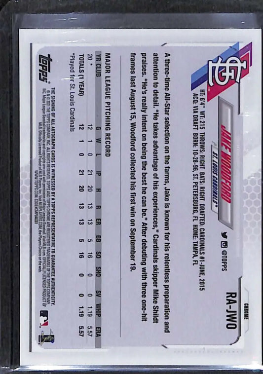 2021 Topps Chrome #RA-JWO Jake Woodford Rookie Auto NM-MT Baseball Card