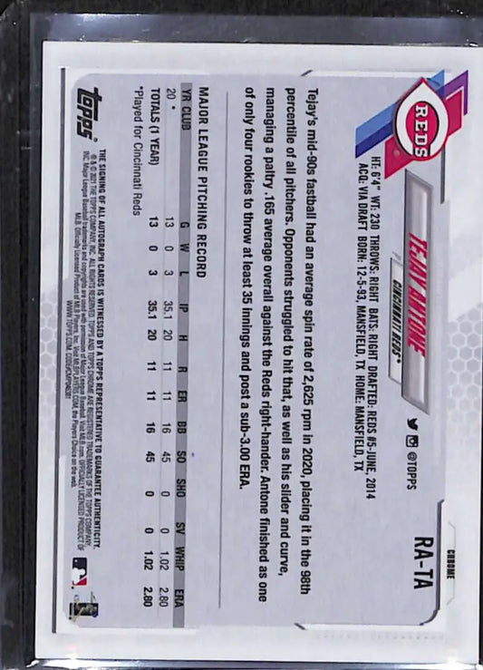 2021 Topps Chrome #RA-TA Tejay Antone Rookie Auto NM-MT Baseball Card