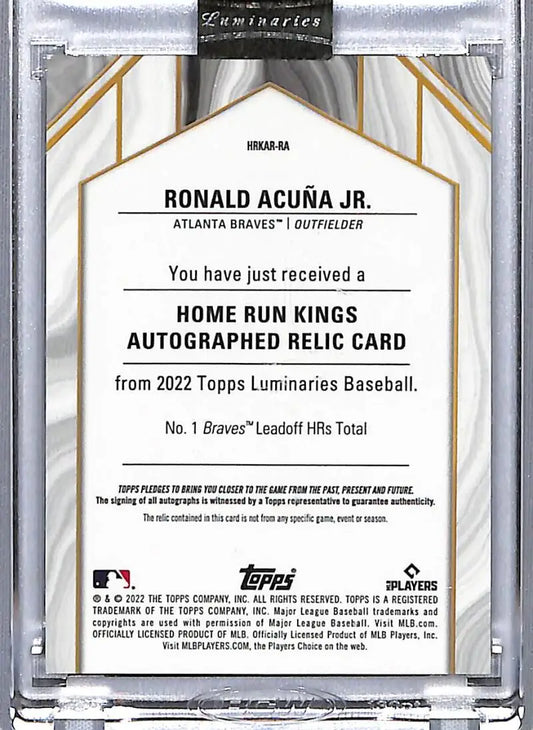 2022 Topps Luminaries #HRKARRA Ronald Acuna Jr. NM-MT MEM Auto 7/15 Atlanta Braves Baseball Card