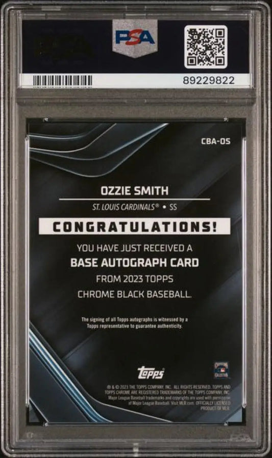 2023 Topps Chrome Black #CBA-OS Ozzie Smith PSA 10 GEM MINT Auto St. Louis Cardinals Baseball Card
