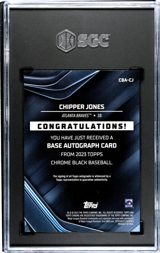 2023 Topps Chrome Black Refractor Orange #CBA-CJ Chipper Jones SGC 10 Gem Auto 6/25 Atlanta Braves Baseball Card