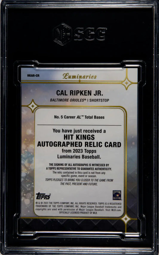 2023 Topps Luminaries #HKAR-CR Cal Ripken Jr. SGC 8.5 NM/MT+ MEM Auto 3/15 Baltimore Orioles Baseball Card