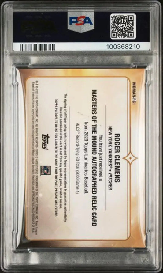 2023 Topps Luminaries #RC1 Roger Clemens PSA 10 GEM MINT MEM Auto 9/10 New York Yankees Baseball Card