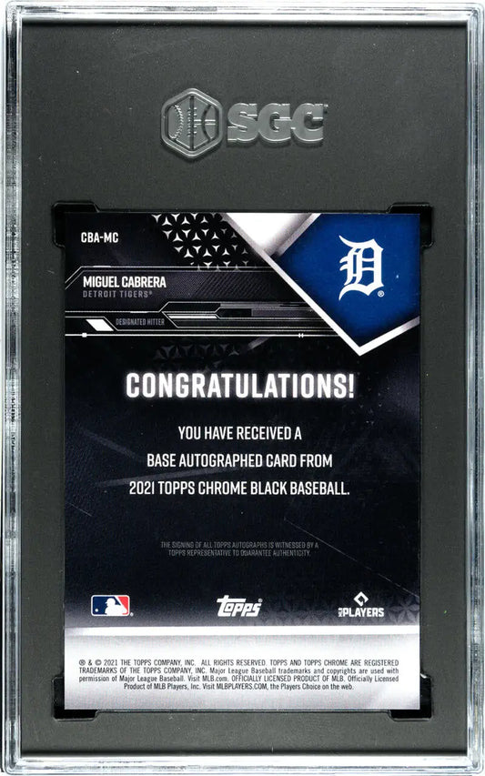 2021 Topps Chrome Black #CBA-MC Miguel Cabrera SGC 10 Gem Auto 56/99 Detroit Tigers Baseball Card