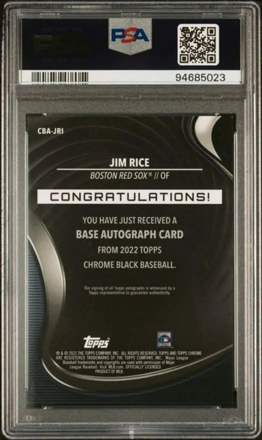2022 Topps Chrome Black Refractor Orange #CBA-JRI Jim Rice PSA 9 MINT Auto 6/25 Boston Red Sox Baseball Card