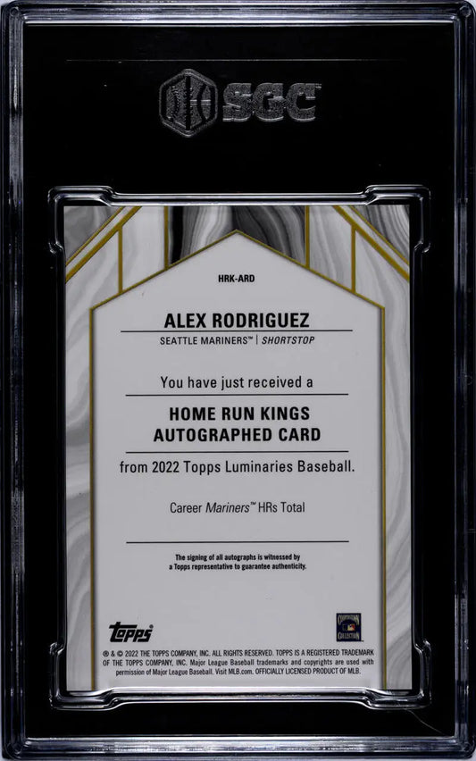 2022 Topps Luminaries #HRK-ARD Alex Rodriguez SGC 9 MINT Auto 2/5 Seattle Mariners Baseball Card