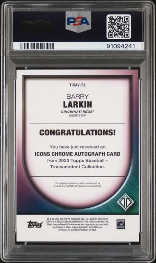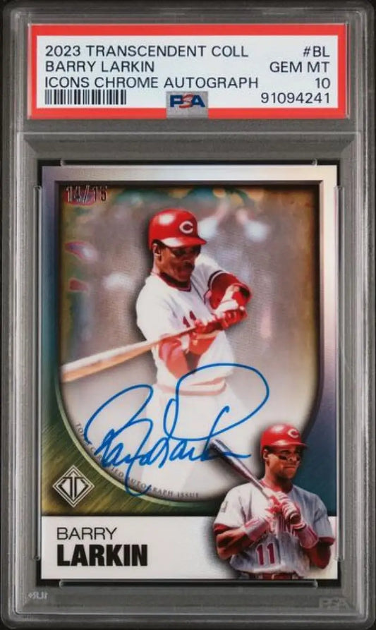 2022 Topps Transcendent Icons #BL Barry Larkin PSA 10 GEM MINT Auto 14/15 Cincinnati Reds Baseball Card
