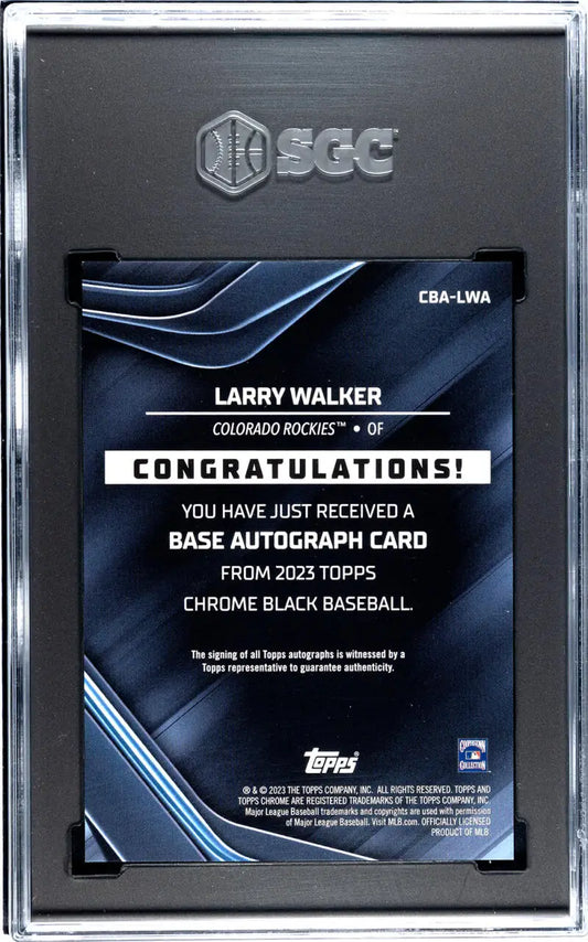 2023 Topps Chrome Black Refractor #CBA-LWA Larry Walker SGC 10 Gem Auto 119/150 Colorado Rockies Baseball Card