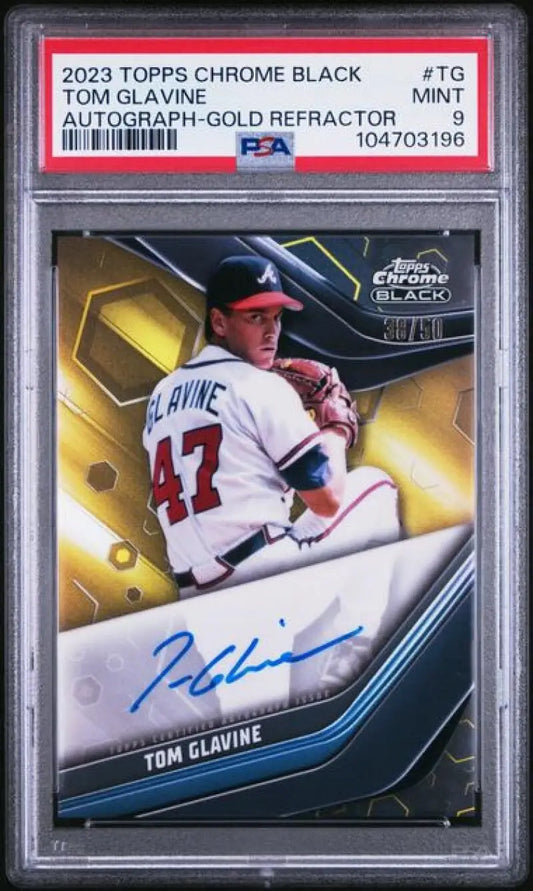2023 Topps Chrome Black Refractor Gold #CBA-TG Tom Glavine PSA 9 MINT Auto 38/50 Atlanta Braves Baseball Card