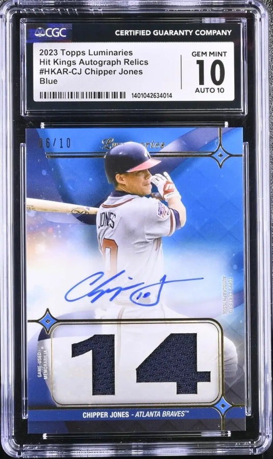 2023 Topps Luminaries #HKARCJ Chipper Jones CGC 10 Gem Mint MEM Auto 6/10 Atlanta Braves Baseball Card