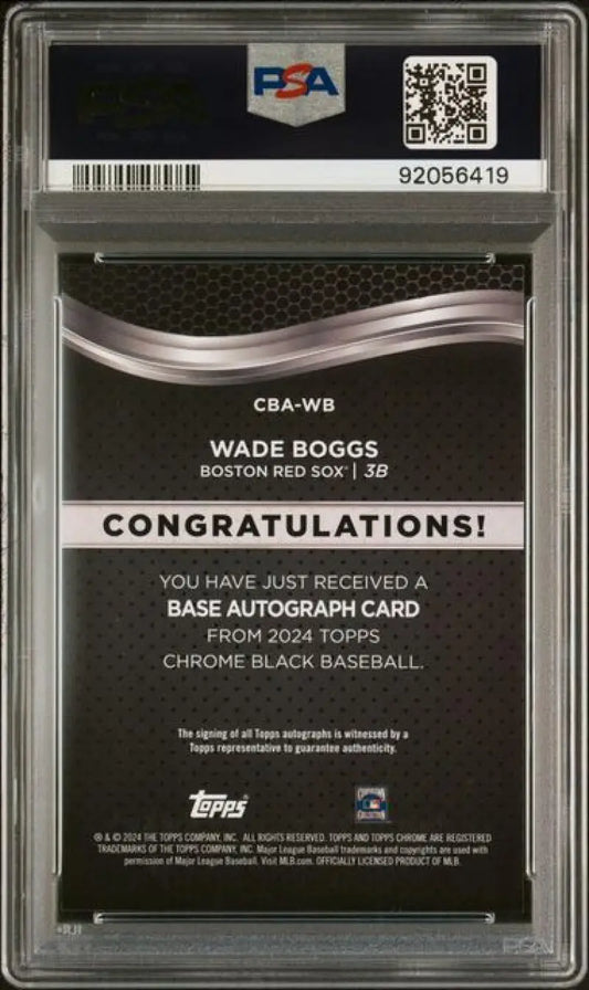 2024 Topps Chrome Black #CBA-WB Wade Boggs PSA 9 MINT Auto Boston Red Sox Baseball Card