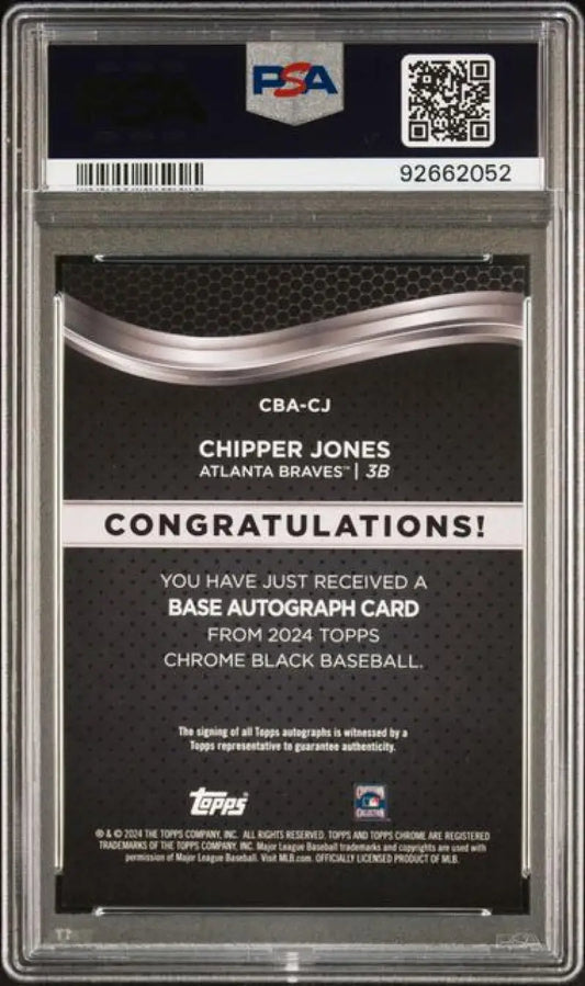 2024 Topps Chrome Black Refractor Gold #CBA-CJ Chipper Jones PSA 9 MINT Auto 45/50 Atlanta Braves Baseball Card