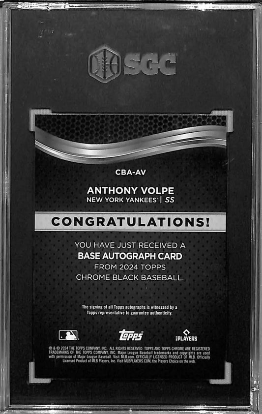 2024 Topps Chrome Black Refractor Green #CBA-AV Anthony Volpe SGC 10 Gem Auto 24/99 New York Yankees Baseball Card