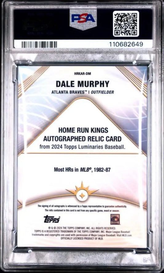 2024 Topps Luminaries Home Run Kings Relics Blue #HRKAR-DM Dale Murphy PSA 9 MINT MEM Auto 1/10 Atlanta Braves Baseball Card