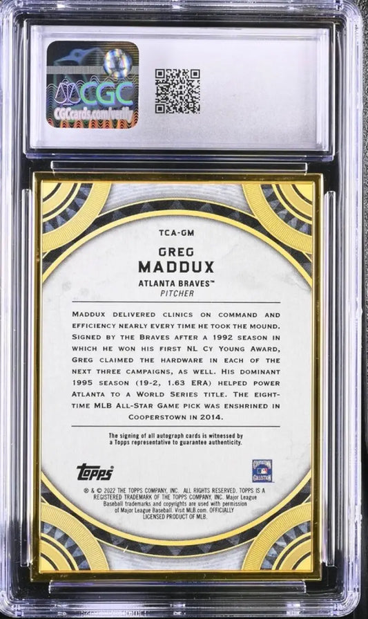2022 Topps Transcendent Emerald #TCAGM Greg Maddux CGC 9 Gem Auto 14/15 Atlanta Braves Baseball Card