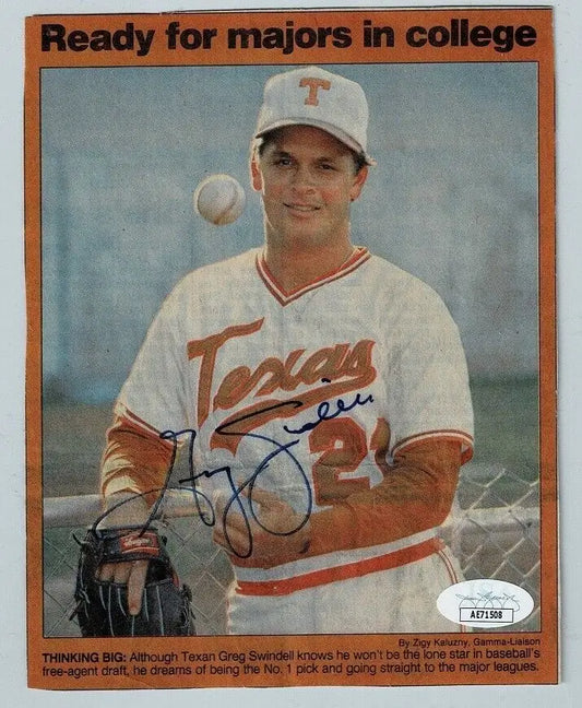 Greg Swindell Autographed Univ of Texas Longhorns Newspaper Cut Out Auto 5x7 JSA