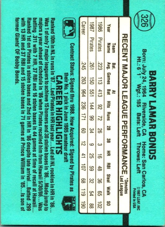 1988 Donruss #326 Barry Bonds EX Pittsburgh Pirates Baseball Card