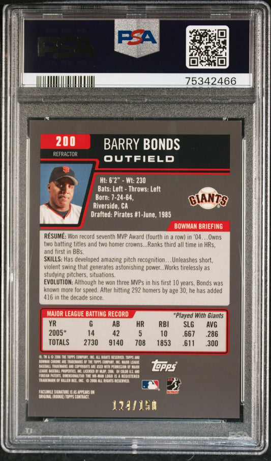BARRY BONDS 2006 Bowman Chrome #/150 Blue Refractor PSA 9 MINT GIANTS Pop 11
