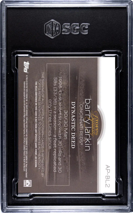2018 Topps Dynasty Patches Barry Larkin SGC 9 MINT MEM Auto 6/10 Cincinnati Reds Baseball Card
