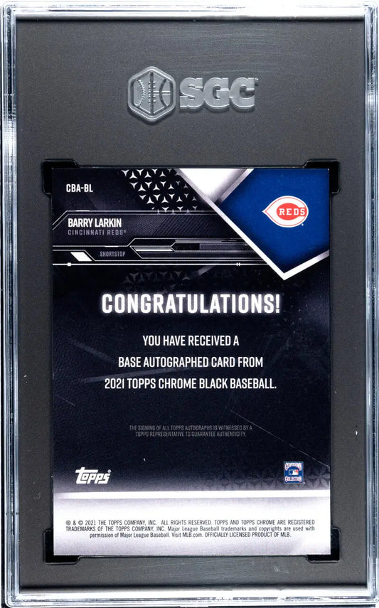 2021 Topps Chrome Black #CBA-BL Barry Larkin SGC 10 Gem Auto Cincinnati Reds Baseball Card