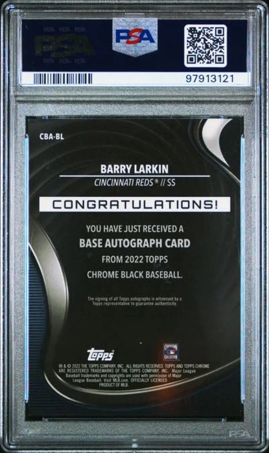 2022 Topps Chrome Black #CBA-BL Barry Larkin PSA 9 MINT Auto Cincinnati Reds Baseball Card