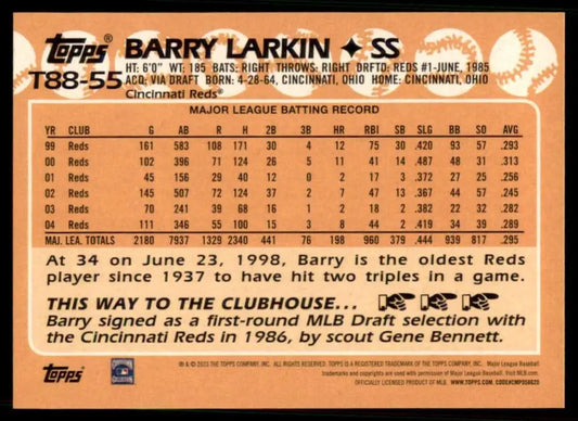 2023 Topps 1988 Baseball #T88-55 Barry Larkin NM-MT Cincinnati Reds Baseball Card