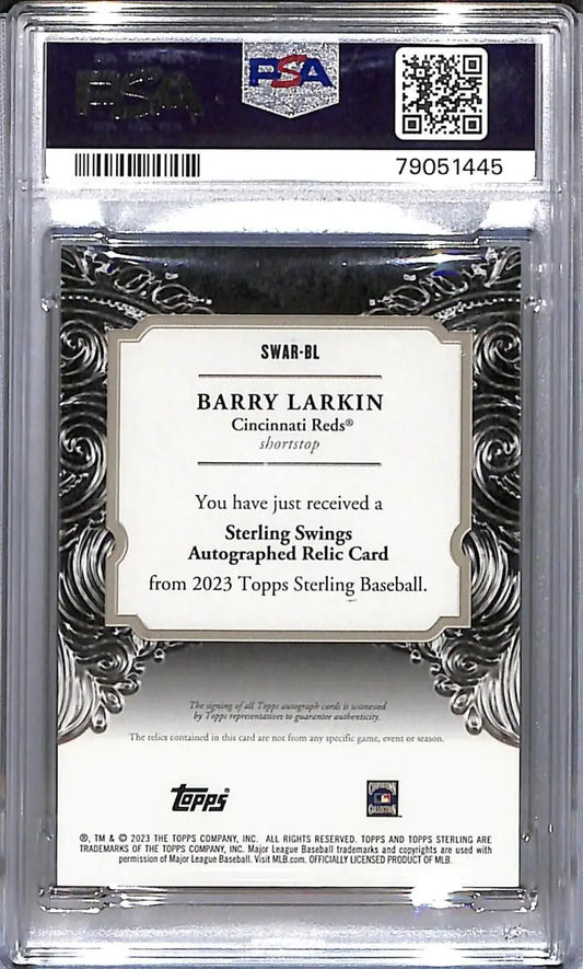 2023 Topps Sterling Swings #SWAR-BL Barry Larkin PSA 9 MINT MEM Auto 07/10 Cincinnati Reds