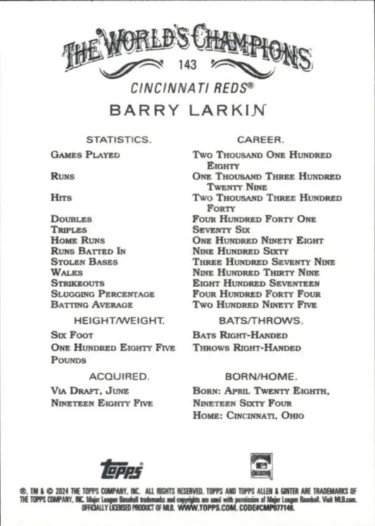 2024 Allen & Ginter #143 Barry Larkin NM-MT Cincinnati Reds Baseball Card