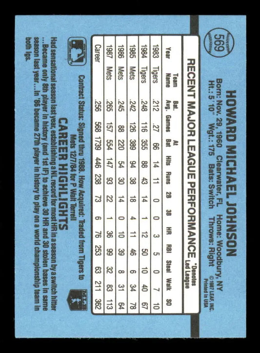 1988 Donruss #569 Howard Johnson EX New York Mets Baseball Card