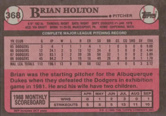 1989 Topps #368 Brian Holton NM-MT Los Angeles Dodgers Baseball Card