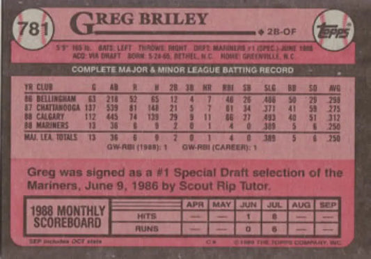 1989 Topps #781 Greg Briley NM-MT RC Rookie Seattle Mariners Baseball Card
