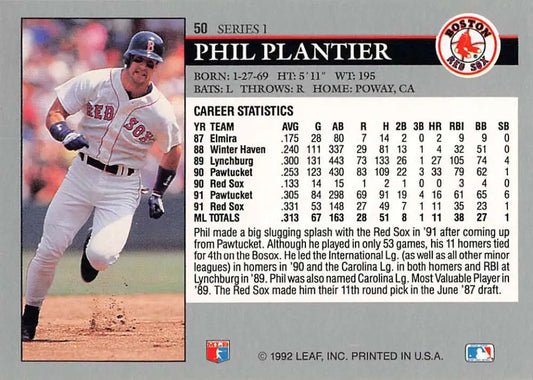 1992 Leaf #50 Phil Plantier NM-MT Boston Red Sox Baseball Card