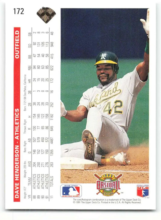 1992 Upper Deck #172 Dave Henderson NM-MT Oakland Athletics Baseball Card