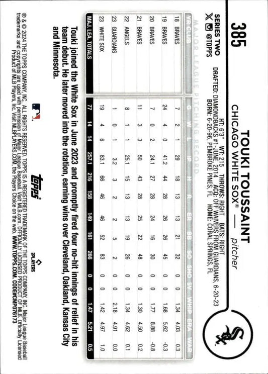 2024 Topps #385 Touki Toussaint NM-MT Chicago White Sox Baseball Card