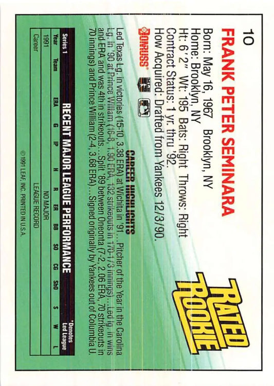 1992 Donruss #10 Frank Seminara RR NM-MT RC Rookie San Diego Padres Baseball Card