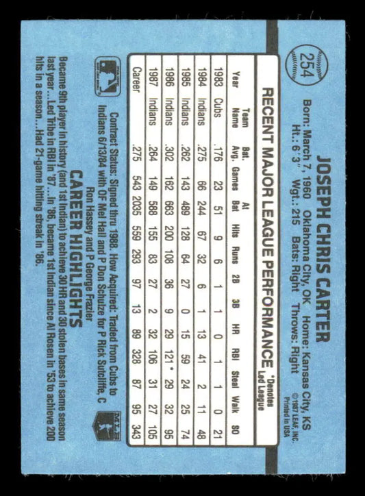 1988 Donruss #254 Joe Carter EX Cleveland Indians Baseball Card