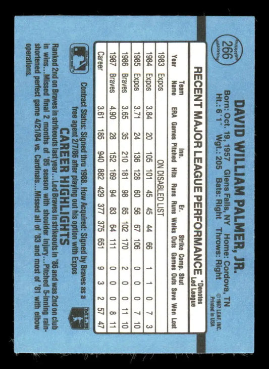 1988 Donruss #266 David Palmer EX Atlanta Braves Baseball Card