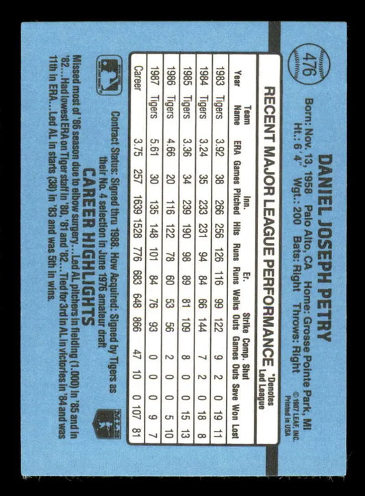 1988 Donruss #476 Dan Petry EX Detroit Tigers Baseball Card