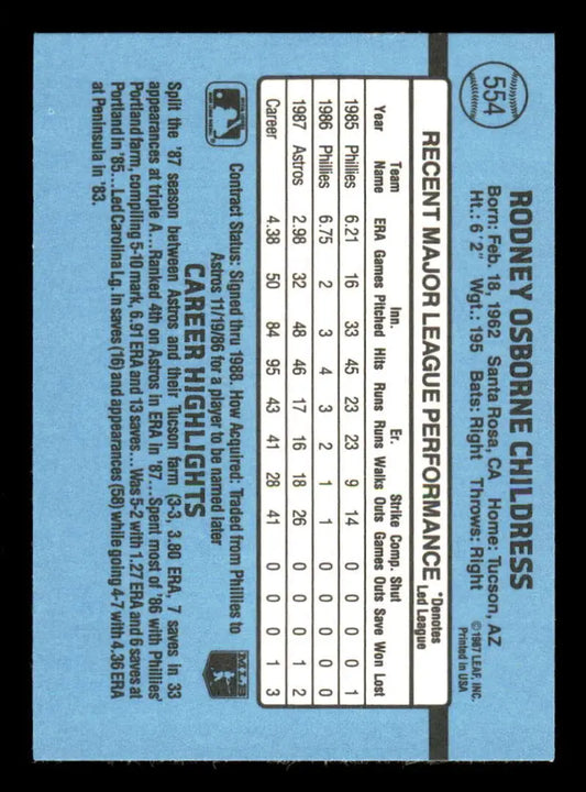1988 Donruss #554 Rocky Childress EX RC Rookie Houston Astros Baseball Card
